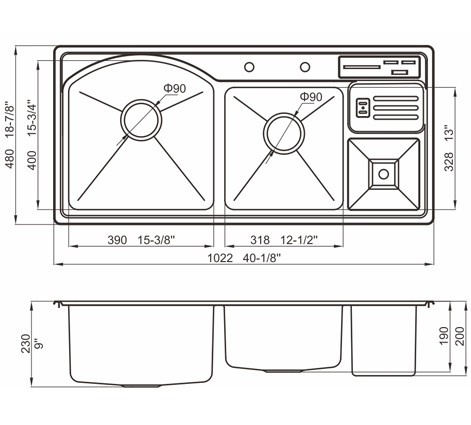 槽底采用斜面压痕,四辐导流槽设计,与平面压痕和无痕水槽相比,导水更为流畅,下水更迅速,能有效防止积水,消除沉淀物